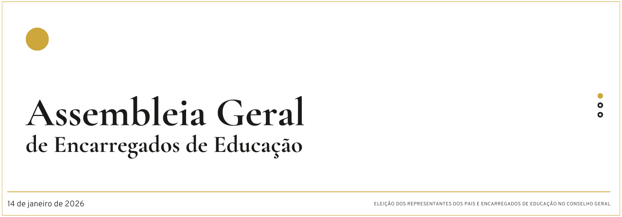 De acordo com o previsto no Decreto-Lei n.º 75/2008, de 22 de abril (artigo 15.º), irá realizar-se, no dia 14 de janeiro de 2026, pelas 20h30, na escola sede, uma Assembleia Geral de Encarregados de Educação, com vista à eleição dos seus representantes no Conselho Geral.