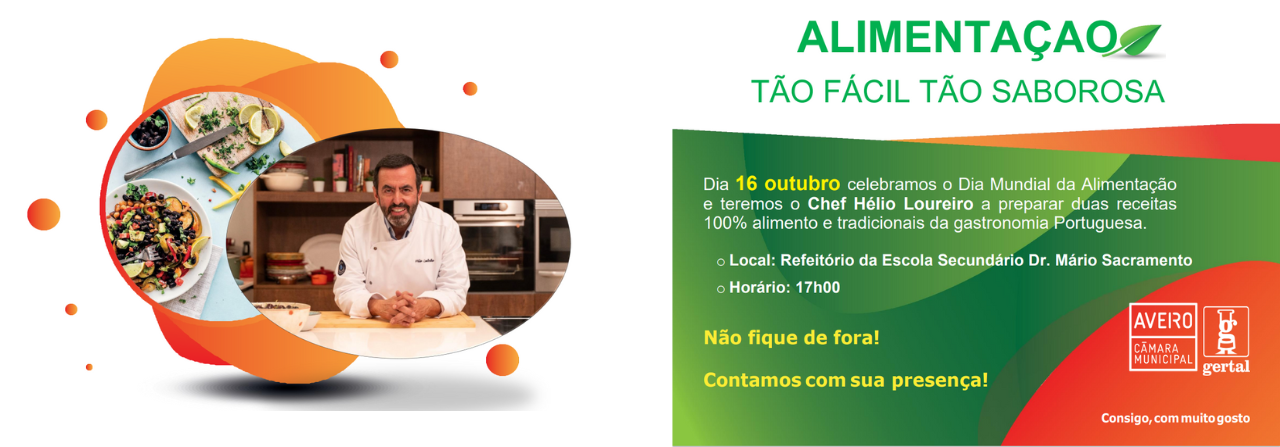 O Agrupamento de Escolas Dr. Mário Sacramento vai receber o reconhecido Chef Hélio Loureiro para uma sessão especial dedicada ao tema “Alimentação — Tão Fácil, Tão Saborosa”. Esta iniciativa insere-se nas atividades do PESES (Programa de Educação para a Saúde e Educação Sexual) e conta com a colaboração da Câmara Municipal de Aveiro e da GERTAL.