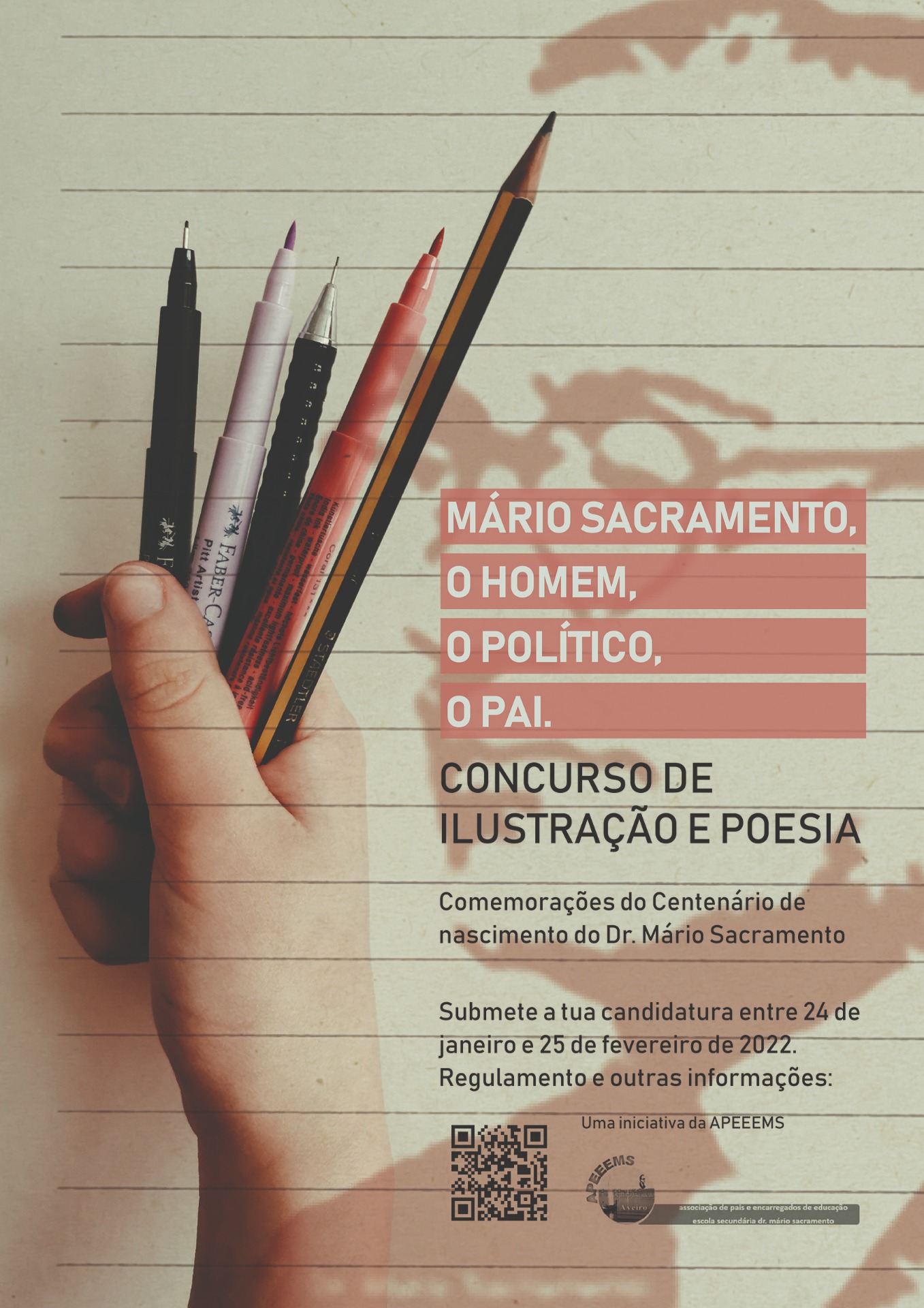 No intuito de fomentar o gosto pela poesia pretende a Associação de Pais e Encarregados de Educação, do Agrupamento de Escolas Dr. Mário Sacramento promover um concurso no âmbito da Comemoração do centenário do nascimento de Mário Sacramento, o Concurso de Poesia e Ilustração, subordinado ao Tema: Mário Sacramento, o Homem, o Político, o Pai.