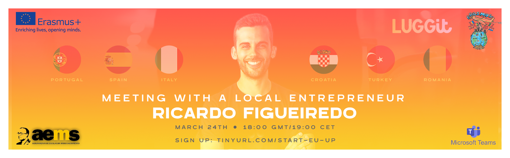 No âmbito do projeto Start-EU-Up, inserido no programa Erasmus+, cujo tema é o empreendedorismo, vai realizar-se no dia 24 de março, uma palestra intitulada "Meeting with a local entrepreneur" com o jovem empreendedor Ricardo Figueiredo.